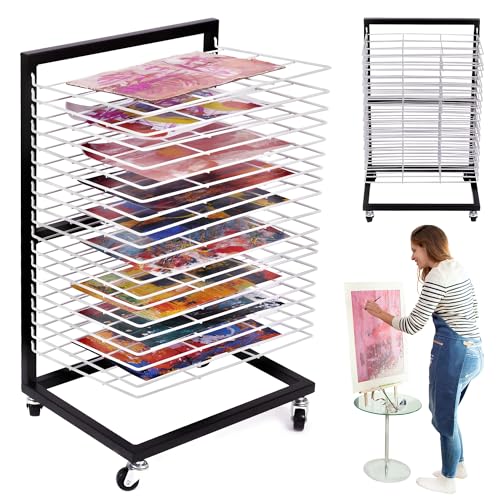 Litet Konsttorkställ För Klassrum | Funktionellt & Flyttbart Färgtorkställ | 19 Avtagbara Hyllor | Målardukställ Konst Förvaring | Taveltorkställ Med Hjul | Art Drying Rack Small