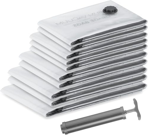SilverRack vakuumpåsar set resor [12 stycken] i 4 storlekar (3 x small 4 x medium 3 x stor 2 x XL) – resevakuumpåse för kläder för rullning – vakuum klädpåse – kläder vakuumpåse