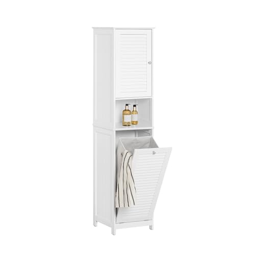 SoBuy Högt Badrumsskåp med Tvättkorg – Smalt Fristående Badrumsskåp, Smalt Förvaringsskåp med Hyllor, Vita Badrumsmöbler 40x170x38 cm BZR124-W