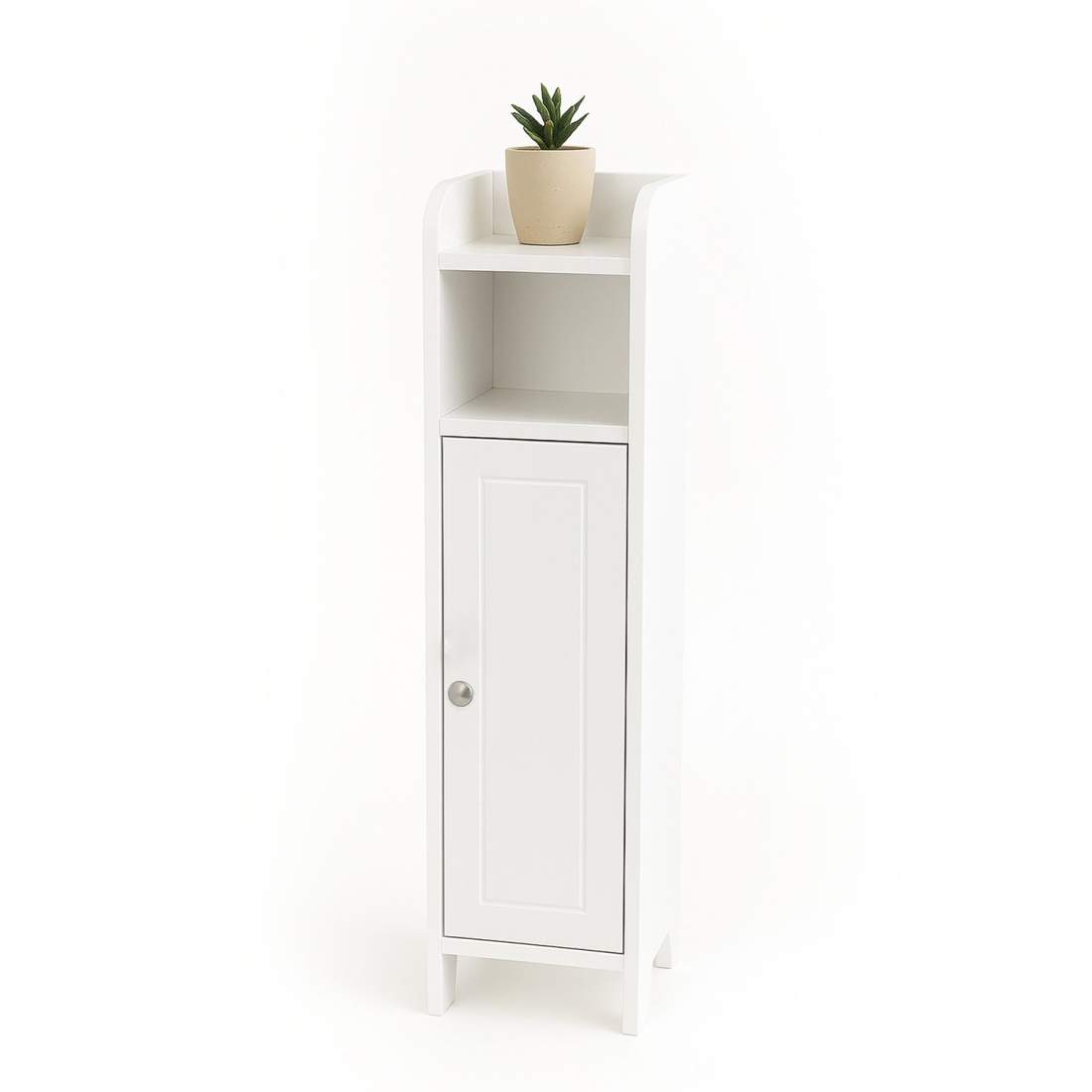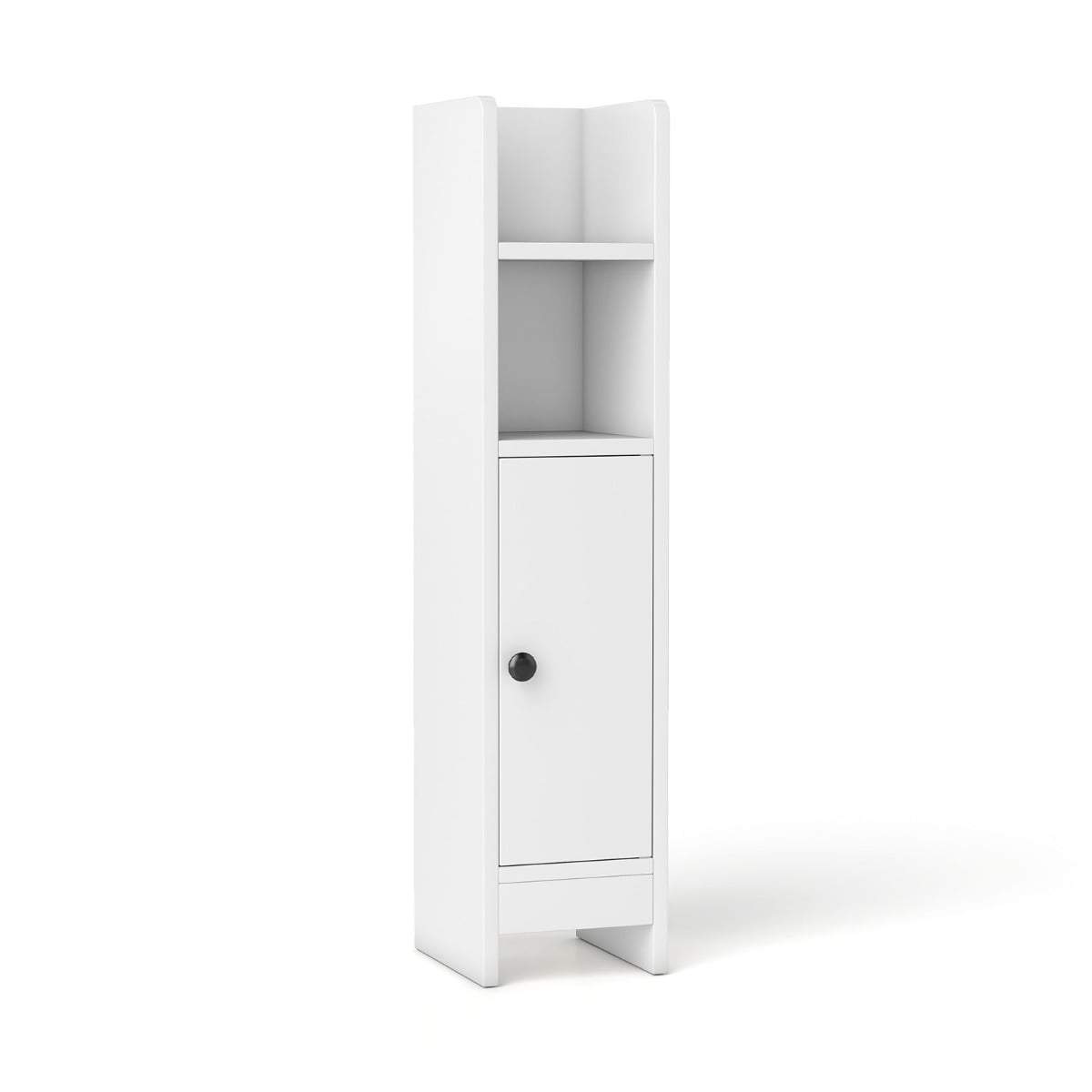 SoBuy Smalt Badrumsskåp oalettskåp med Dörr, Justerbar Hylla & Toalettrullehållare, Fristående Förvaringsenhet för Små Utrymmen, Vit FRG177-W