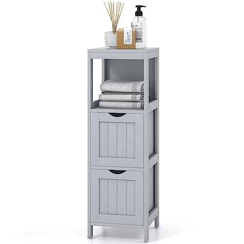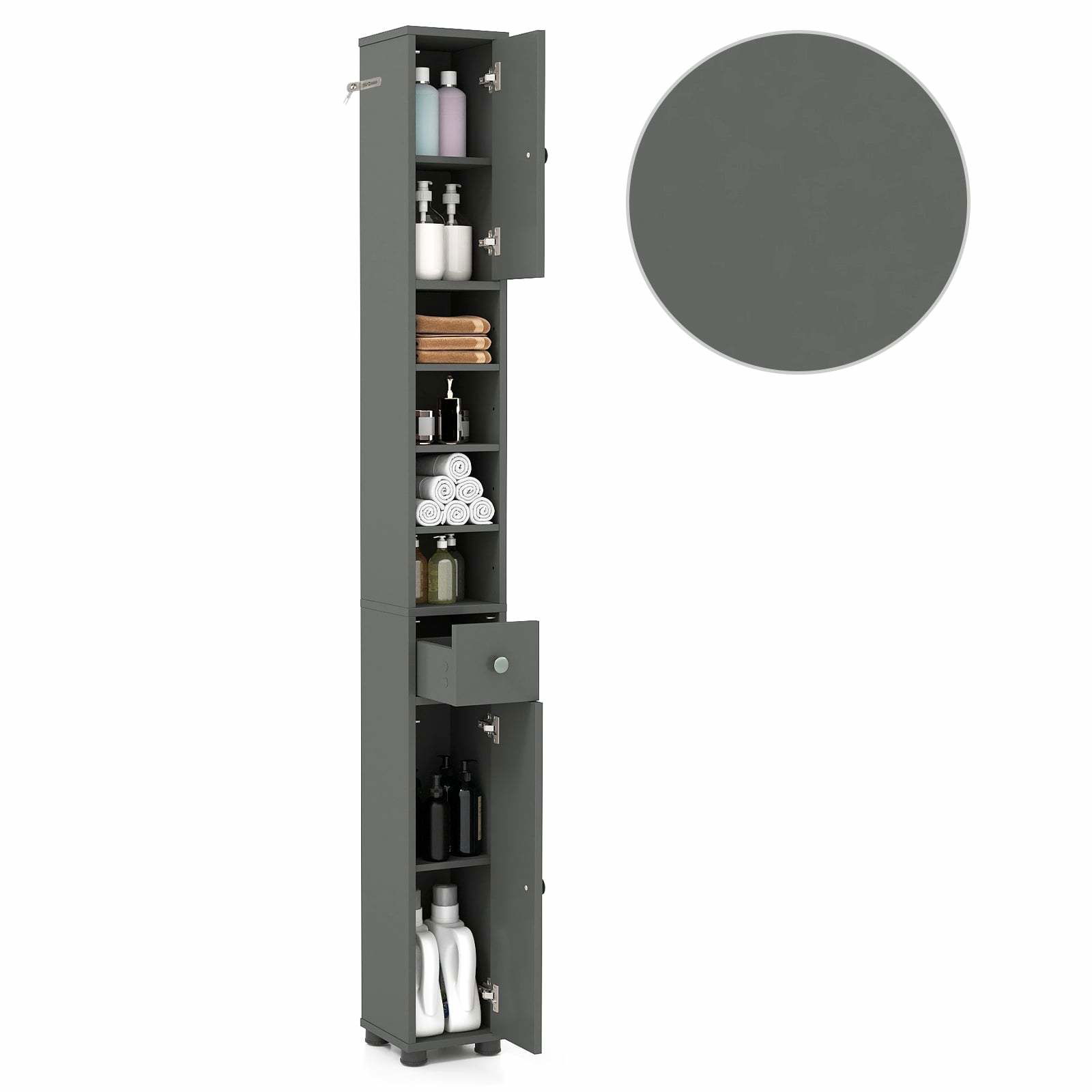COSTWAY Toalettskåp, högt skåp, smalt badrumsskåp med 2 dörrar, 1 låda och justerbara hyllor, platsbesparande badrumshylla för badrum, vardagsrum, kök, 20 x 20 x 180 cm (ljusgrå)