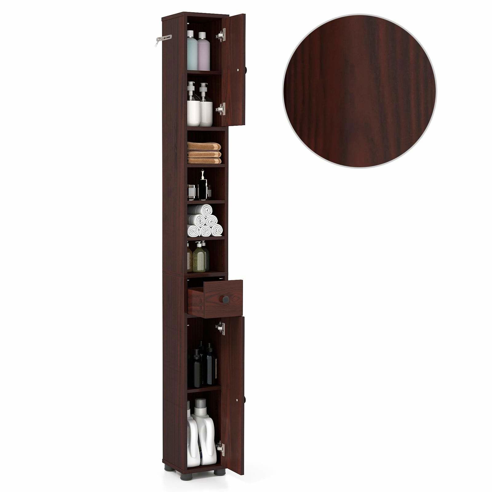 SoBuy Hög Badrumsförvaringsskåp – Fristående Smalt Badrumsskåp, Vattenresistent MDF med Justerbara Hyllor och Låda – Kompakt Badrumsmöbel, Mörkbrunt, B20 x D20 x H180cm, BZR34-BR
