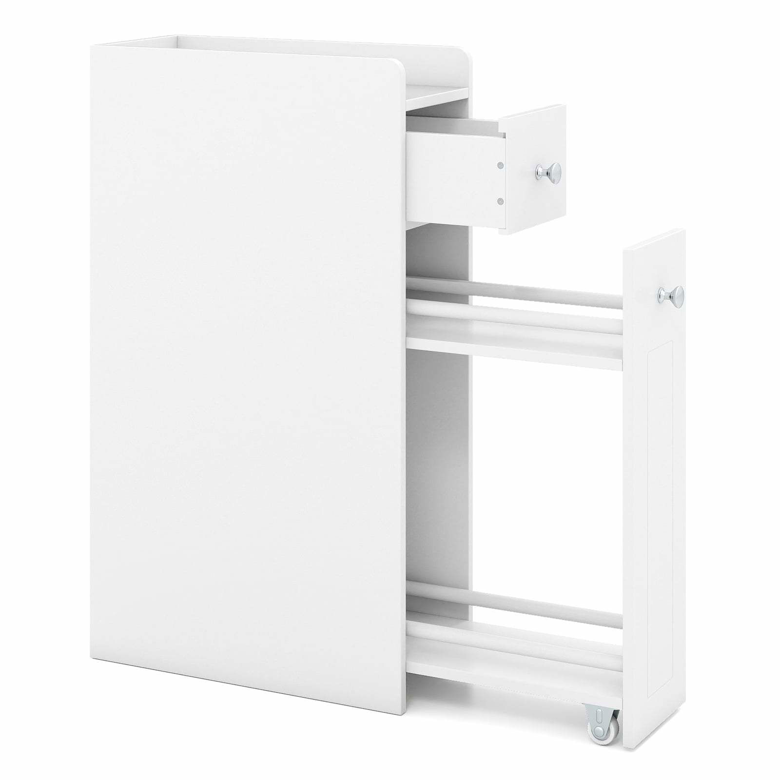 GOPLUS Nischskåp, litet badrumsskåp med lådor, nischvagn, sidoskåp, badrumsskåp, smalt sidoskåp, nischhylla för badrum och kök, 48 x 15 x 58 cm (vit)
