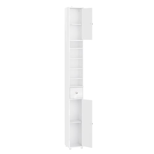 FOREHILL 180 cm högt badrumsskåp, badrumsskåp, smalt badrum, högskåp med 2 dörrar och 1 låda, 37 x 30 x 180 cm, vit