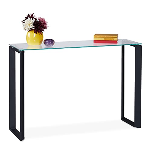 Relaxdays Ingångskonsolbord, smalt bord, korridor, glas och metall, HLP: 75x110x35cm, vardagsrum, svart