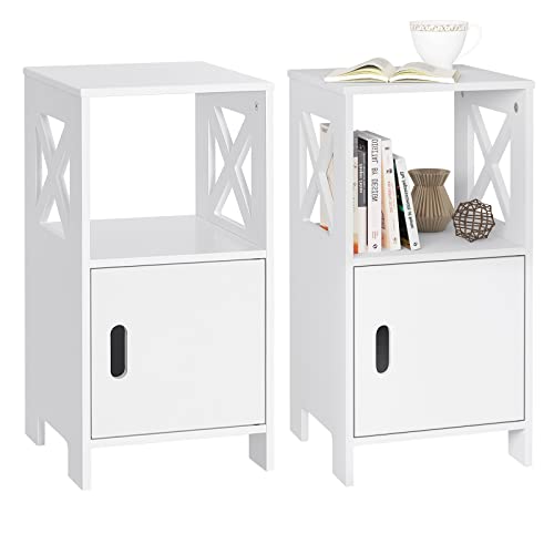 WOLTU Uppsättning av 2 nattduksbord smalt vitt, nattduksbord med 1 öppet och 1 fack med dörr, 30 x 60 x 30 cm, modernt nattduksbord, som sidobord soffbord, för sovrum vardagsrum TSR166ws-2