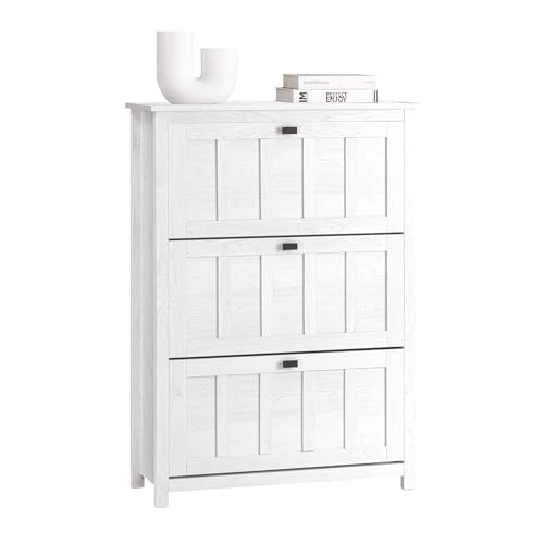 WOLTU Smalt skoskåp, med 3 fällbara lådor, skoskåp för entré, hall, vardagsrum, sovrum, tekniskt trä, vit