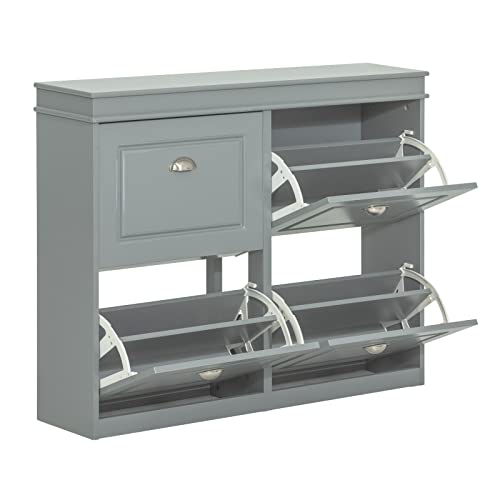 SoBuy Smalt skoskåp Sittbänk med förvaring skoställ Skohylla smal Skobänk med klaffar Grå FSR82-K-HG