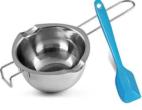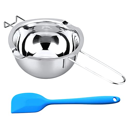 Darkyoun Vattenbad skål smältkruka smältskål 304 rostfritt stål smältskål med blå spatel för smältning choklad ljus vax socker smör ost karamell (400 ml)