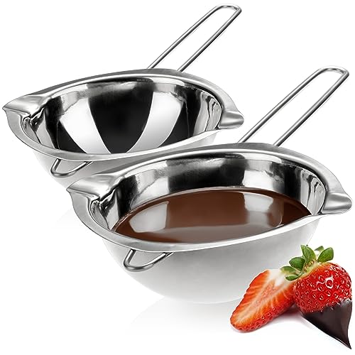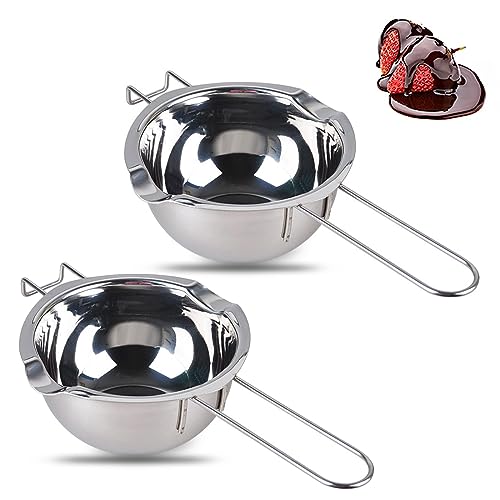GLOBALDREAM Smältskål, 2 stycken, 400 ml dubbel panna smältkanna för choklad, socker, smör, ost, karamellljus, 304 rostfritt stål