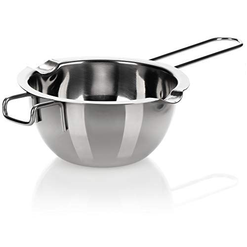 com-four® Smältdegel för vattenbad - smältskål med 2 piper - slitstark smältskål för vattenbad - rostfritt stål - tål diskmaskin (01 bit - 400 ml)