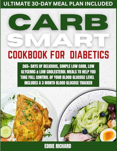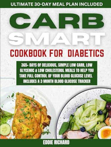 CARB SMART COOKBOOK FOR DIABETICS: 365+ DAYS OF DELICIOUS, SIMPLE LOW CARB, LOW GLYCEMIC & LOW CHOLESTEROL MEALS TO HELP YOU TAKE FULL CONTROL OF YOUR BLOOD GLUCOSE LEVEL
