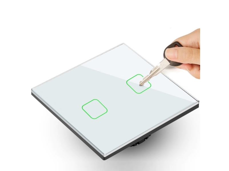 Maclean Mce717w Dubbel Touch-Ljusströmbrytare, Smart, Tuya App, Glas, Vit Med Fyrkantig Knappbelysning, 86X86mm