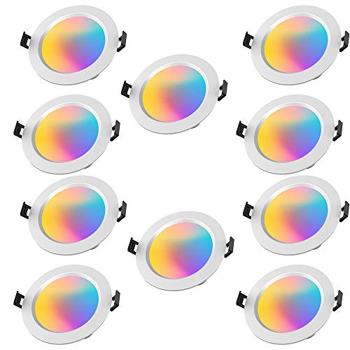 Set om 10 infällda LED-spotlights, bluetooth, smart app, 5 W, downlight, RGBWC, infälld lampa, LED-spotlights, 230 V, dimbara infällda lampor, aluminium, takspotlight, för takspotlights, vardagsrum, badrum
