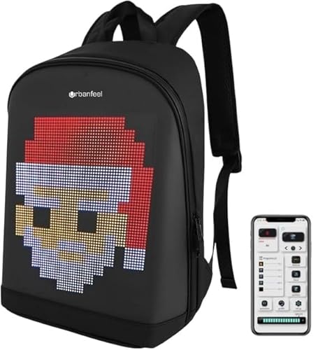 URBANFEEL Smart LED-ryggsäck med programmerbar digital display, mobilappstyrning, svart, Svart och gul, L