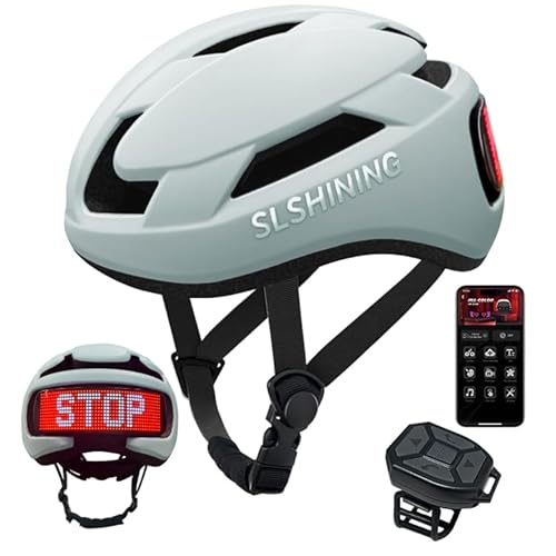 MOYACA Cykelhjälm, smart app-program cykelhjälm med uppladdningsbart USB-ljus, bakljus berg för vuxna och män kvinnor, med blinkers fjärrkontroll (grå, stor)