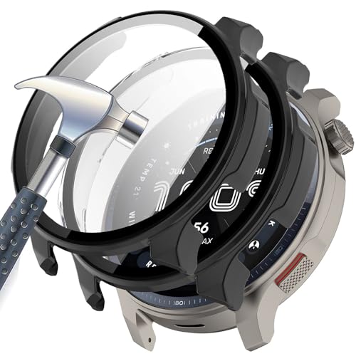 Acadey 2 st hårt fodral kompatibelt med Amazfit balance 2 skyddande film, 9H hårdhet hård PC härdat glas tunt fodral för smart, 2 svart