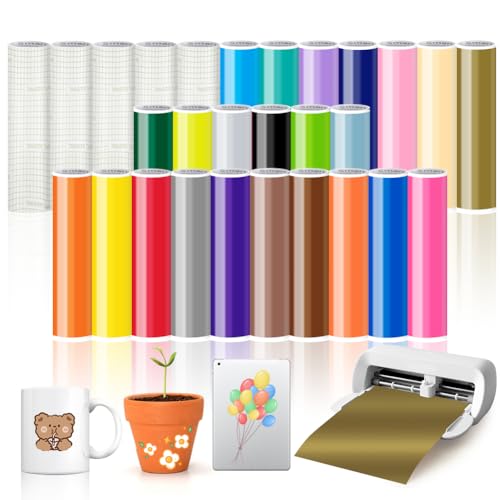 28 stycken smart vinyl permanent för Cricut Joy Xtra, smart självhäftande vinyl permanent med överföringsfolie 24 x 30,5 cm vinylplotter film, plotterfolie självhäftande för gör-det-själv-koppar, bil,