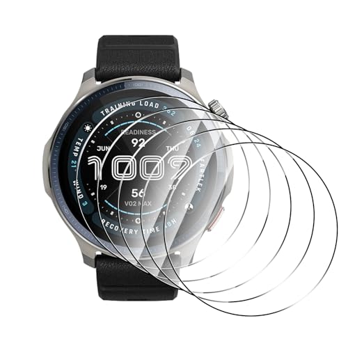 Natbok 5 stycken härdat glas för Amazfit Balance 2 Smart 47 mm, 1,5 tum, skyddande film, reptålig, hårdhet 9H, 0,33 mm transparent, bubbelfri, fingeravtrycksskyddad film för Amazfit Balance Smart 2