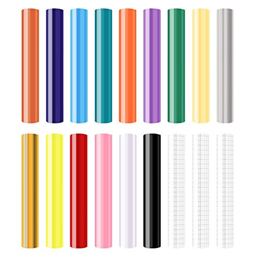 Smart vinyl permanent för Cricut Explore 3/Maker 3, 15 stycken vinylplotter film 30,5 x 30,5 cm plotterfolie självhäftande överföringsfolie plotter set för gör-det-själv-koppar, bilar, banderoller,