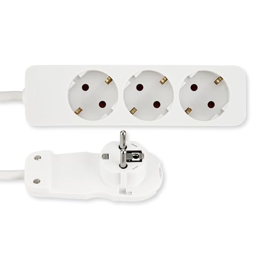 REV grenuttag SMART – flera uttag 3-vägs med platt kontakt – perfekt för användning bakom möbler, kablar 2 m, max. 3680 W, vit