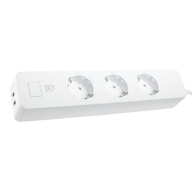 Smart Home grenuttag, 3xCEE 7/3, USB-A 2A, vit