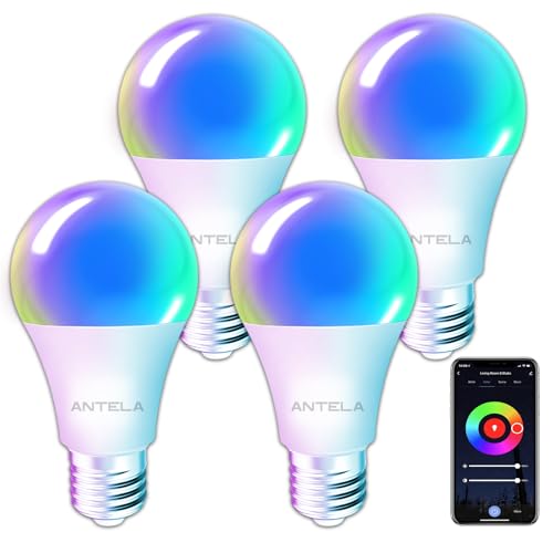 ANTELA E27 Smart Glödlampa RGBCW LED WiFi Smart Glödlampa,7W 806LM Alexa Multicolour Smart Dimbar 2700-6500K,Kompatibel med Google Home/Alexa,Fjärrkontroll,Röststyrning, 4pcs.