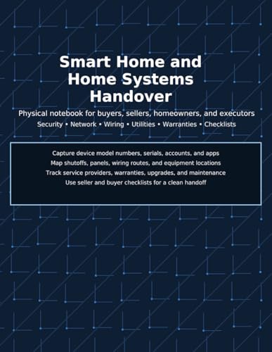 Smart Home and Home Systems Handover: Physical notebook for buyers, sellers, homeowners, and executors Security • Network • Wiring • Utilities • Warranties • Checklists
