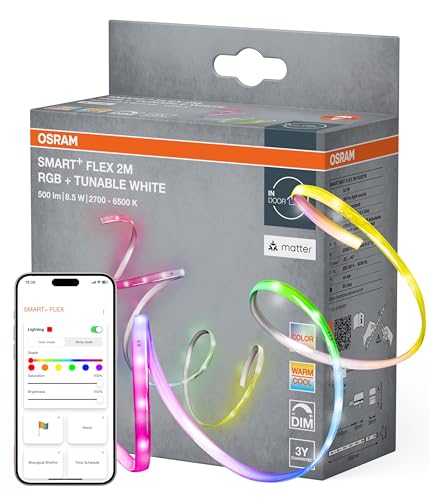 OSRAM SMART MATTER FLEX LED-list, 1M, förlängning, RGBTW för rött, grönt, blått och inställbart vitt för vita toner (varmvitt till kallvitt), styrning via Matter-kompatibla smarta hemsystem, dimbar