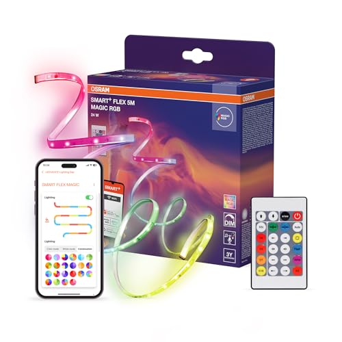 OSRAM SMART+ WIFI FLEX 5M LED-list, vit, 22W, 500lm, dimbar, dynamisk Magic RGB-effekt, individuellt val av ljusfärg, styrbar med app, lång livslängd, enkel installation, IP20