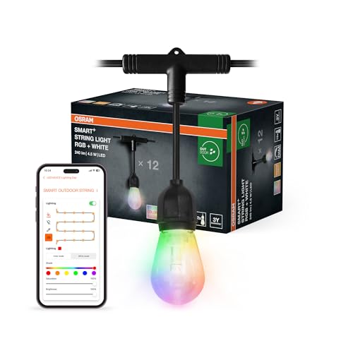 OSRAM SMART+ WiFi LED-ljusslinga STRINGLIGHT, RGBW 12 lampor dimbar, Svart, Syntetmaterial, Modern, Smarta hem dekorationslampa utomhus