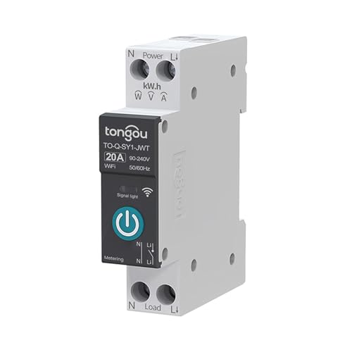 TONGOU DIY 1P+N toppskena, WiFi Smart Switch|20 A, WLAN, intelligent reläströmbrytare|iOS Android-app|TUYA/Smart Life-app.fjärrkontroll|för smart hem|med meter|Röststyrning och tidmätning