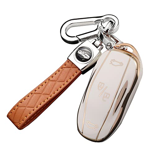 ontto Skydd för bilnyckelbricka som passar till Tesla Model S Smart Key Case TPU fjärrnyckelhållare nyckelring nyckelskal nyckelring skydd tillbehör beige