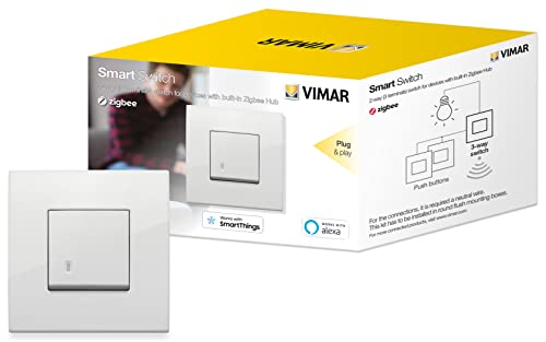 VIMAR 0K19592.01 Arké Smart 2-vägs switch fungerar med Alexa, Kit Plug & Play för enheter i Zigbee-hubb, kräver neutral kabelport, vit