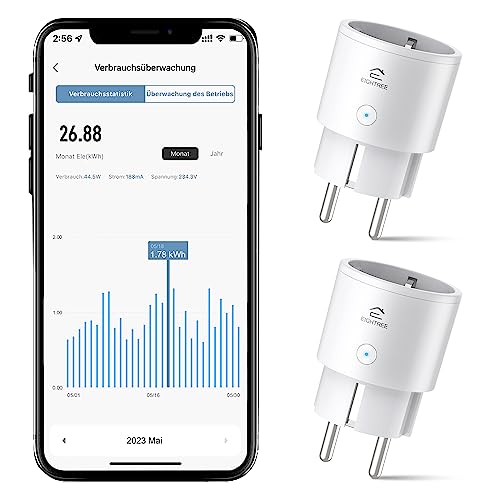 FOREVER WLAN smart plugg, smart WiFi-kontakt för hem, Alexa, Google Assistant, mätning av strömförbrukning, röststyrning, APP-fjärrkontroll, 2,4 GHz, 16 A