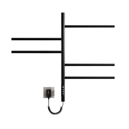 SKYLYZH Elektrisk handdukshängare, elektrisk smart termostatisk handduksvärmare, 420 x 660 mm, roterande 180°, badrumsuppvärmning, energibesparande handdukstork, handduksstång radiator, kolfiberuppvärmning-svart