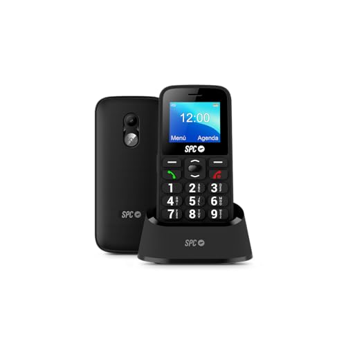 SPC Fortune 2 4G – 4G mobiltelefon för seniorer, SOS-knapp, mycket hög ringklocka (102 dB), fjärrinställningar, stora knappar, smart dörrklocka och aviseringar, utan laddare, svart
