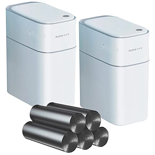 Set med 2 små automatiska papperskorgar för badrum med lock – 9 liters kontaktlös elektrisk papperskorg med rörelsesensor, smart soptunna med rörelsesensor, tunn papperskorg av plast