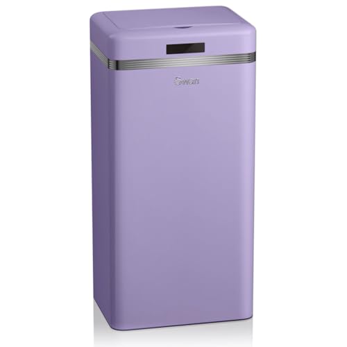 Swan Retro soptunna för automatisk kök, rörelsesensor, 45 liter, metall, smart återvinningskärl med stor kapacitet, vintage design, lila