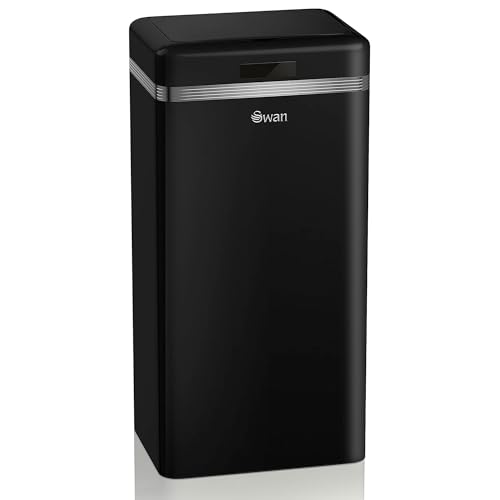 Swan Retro automatisk kökssoptunna, rörelsesensor, 45 liter, metall, smart återvinningskärl med stor kapacitet, vintage design, svart