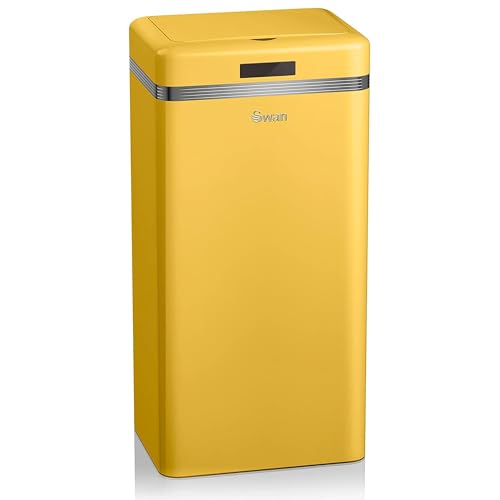 Swan Retro soptunna för automatisk kök, rörelsesensor, 45 liter, metall, smart återvinningskärl med stor kapacitet, vintage design, gul