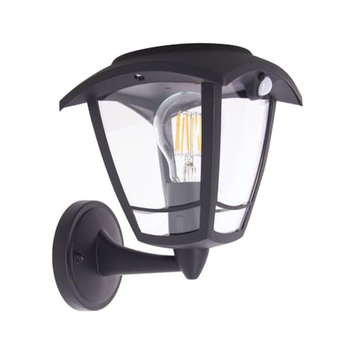 Xanlite Retro svart LED-solcellsvägglampa med rörelsesensor, IP44, 400 lumen, 3 000 K, varmvit, 33 timmars batteritid, smart dekorativ solcellsbelysning för trädgård eller terrass