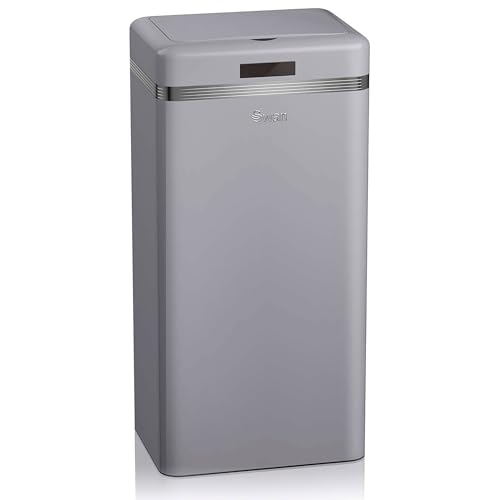 Swan Retro automatisk kökssoptunna, rörelsesensor, 45 liter, metall, smart återvinningskärl med stor kapacitet, vintage design, grå
