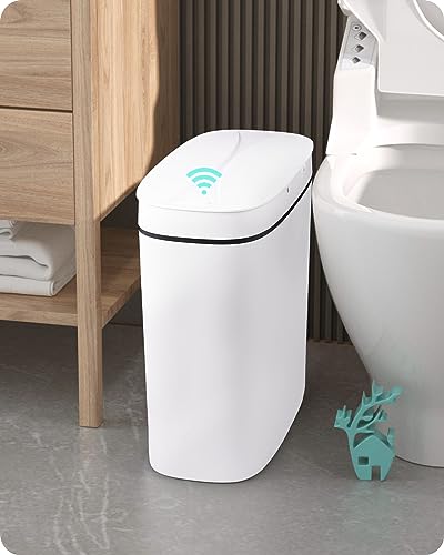 Baffect slimmad soptunna med lock, vattentät rörelsesensor badrumsbehållare 2,5 gallon/9,5 l, automatisk smart papperskorg i plast för kök, liten soptunna för sovrum (vit)
