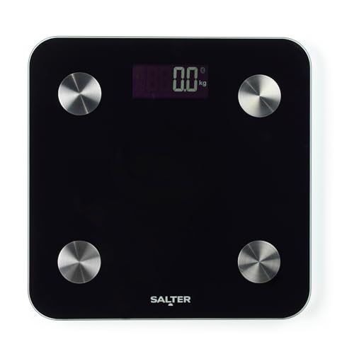 Salter Smart Scale – personlig kroppsviktskala, 180 kg kapacitet, 17 kroppsmätningar, salter hälsoapp, kroppsfett/vatten, muskel/benmassa, BMI och BMR, 8 användarminne, bakgrundsbelyst skärm, svart,