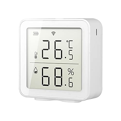 WiFi -temperatursensor 10 x 9 x 5 Smart WiFi fuktighetssensor hygrometer utomhus inomhus termometer digital LCD temperaturfuktighetsmonitor (vit)