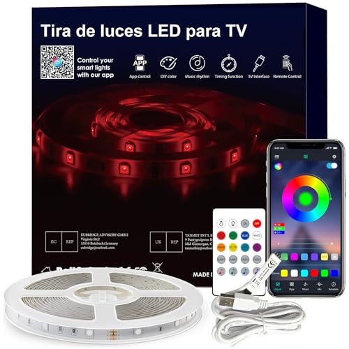 LED-remsa för TV, USB bakgrundsbelysningskit för TV med fjärrkontroll, APP-kontroll, synkronisera med musik, 5050 RGB smart LED-biasbelysning för HDTV (3 m för 45-60-tums TV)