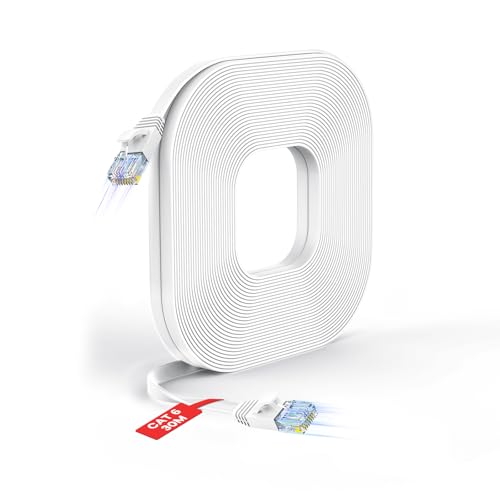 Maplin Ethernet-kabel 30 m vit, platt CAT6 Gigabit LAN UTP nätverkskabel RJ45 höghastighet 10 Gbps kompatibel med bärbar dator, PC, CCTV, PS4/5, Xbox, Switch, modem, roouter, smart TV, Sky Box,
