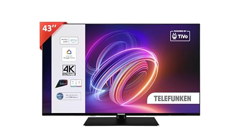 TELEFUNKEN 2025 Smart TV 43 tum Ultra HD TE43750B46I2PZ, TiVo 43 tums LED-TV, kompatibel med Alexa och Google Assistant, DVB-I, DVB-T2, Dolby Vision, HDR10