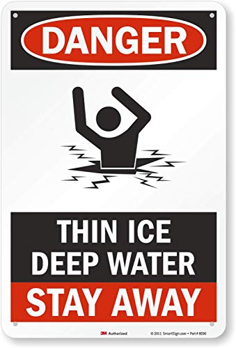 SmartSign 3 m reflekterande skylt med hög intensitet, Legend "Fara: Tunn is djupt vatten, håll dig borta", 45 cm hög x 30 cm bred, svart/röd på vitt